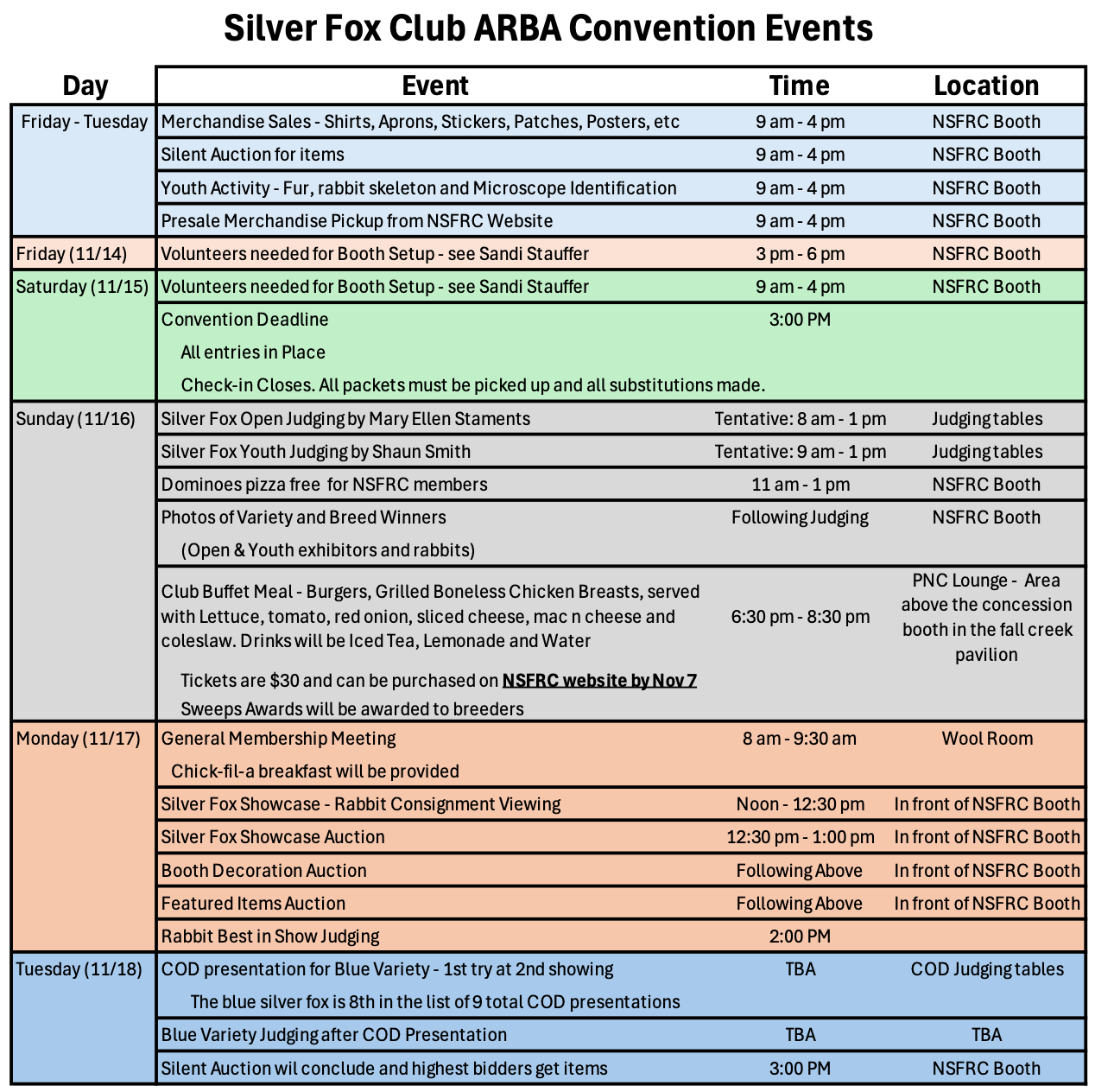 NSFRC invites you to attend the ARBA Convention from November 14 to 19, 2025